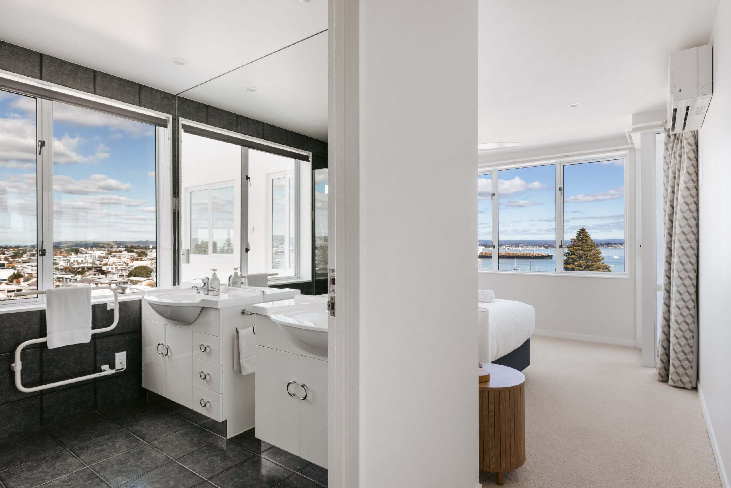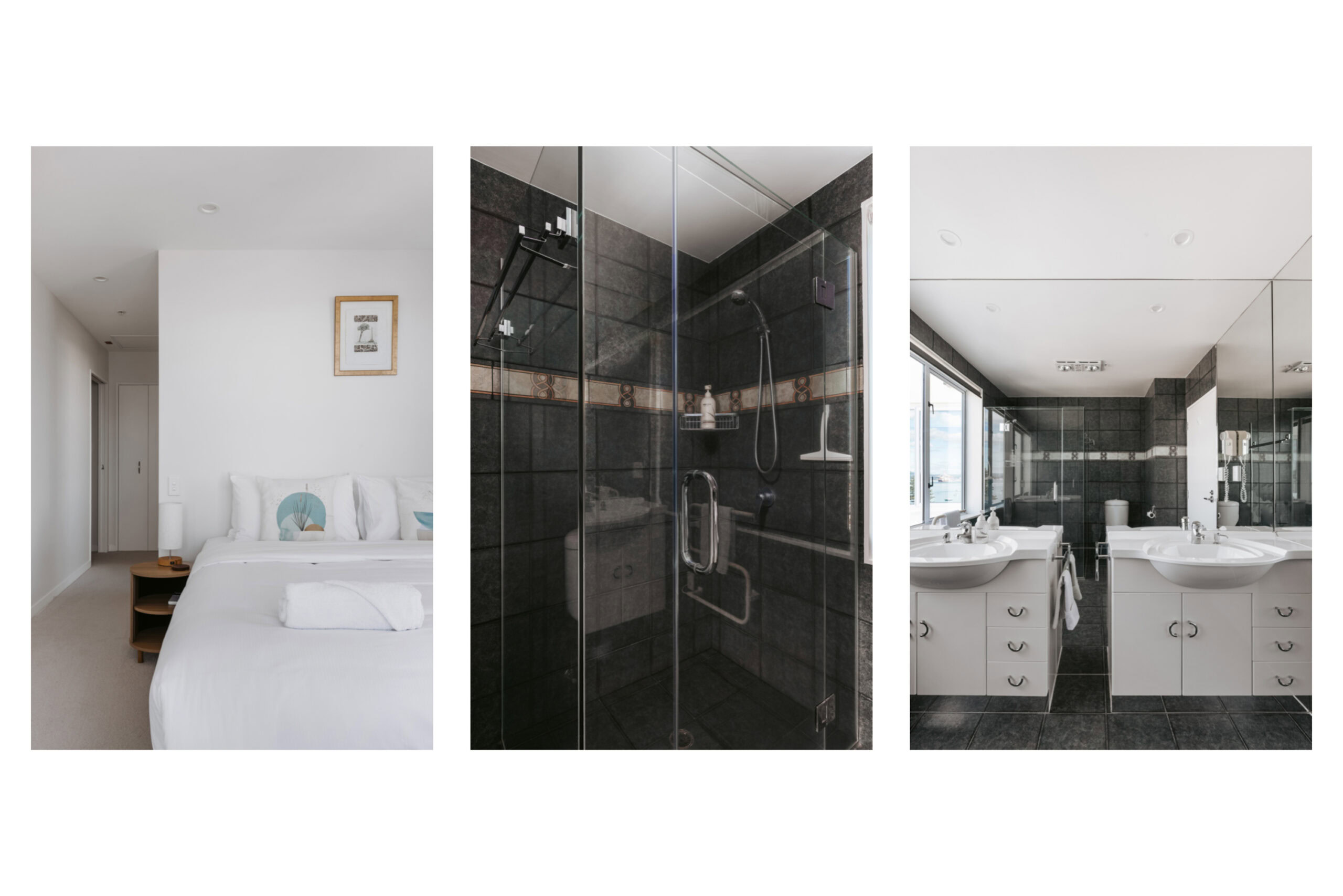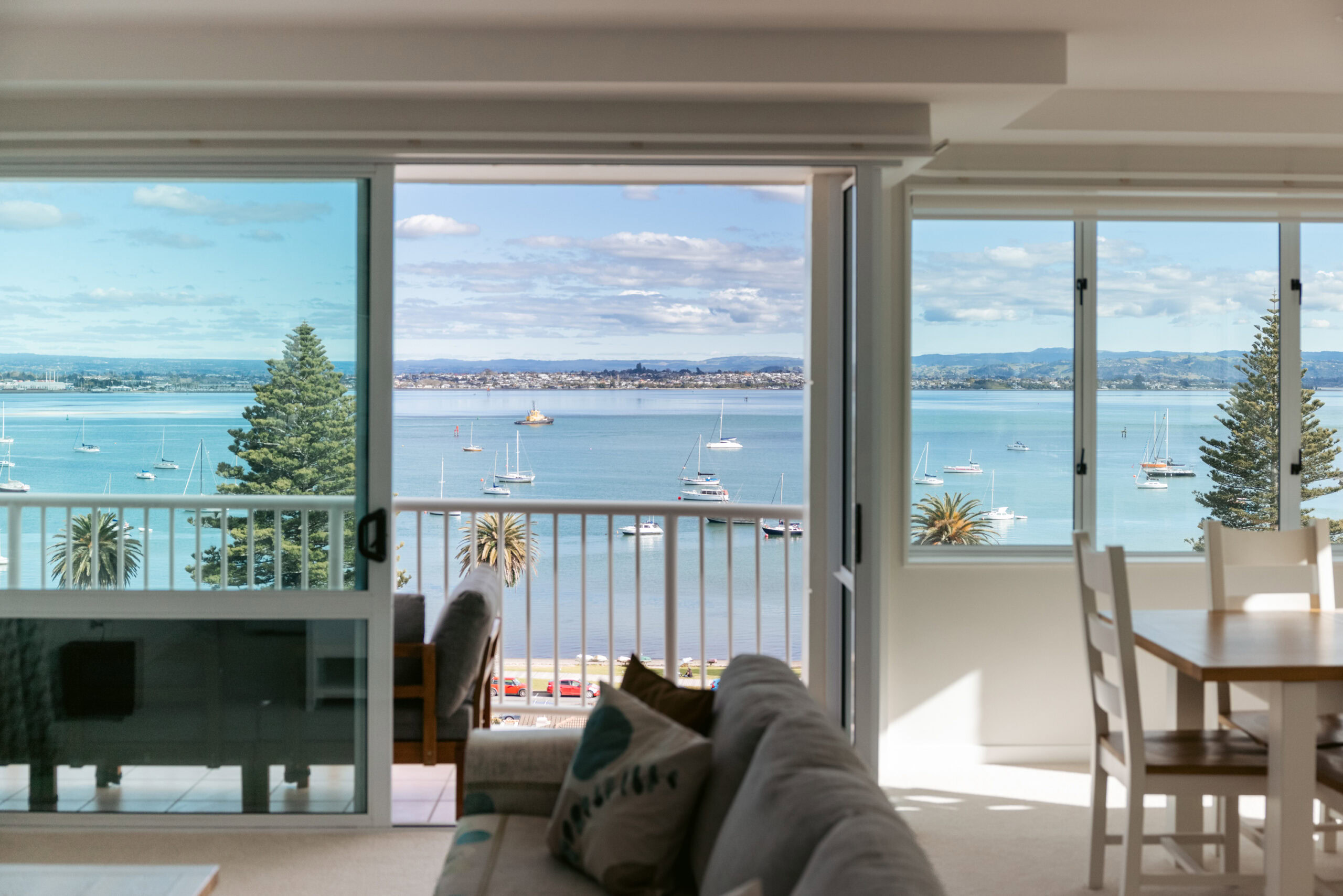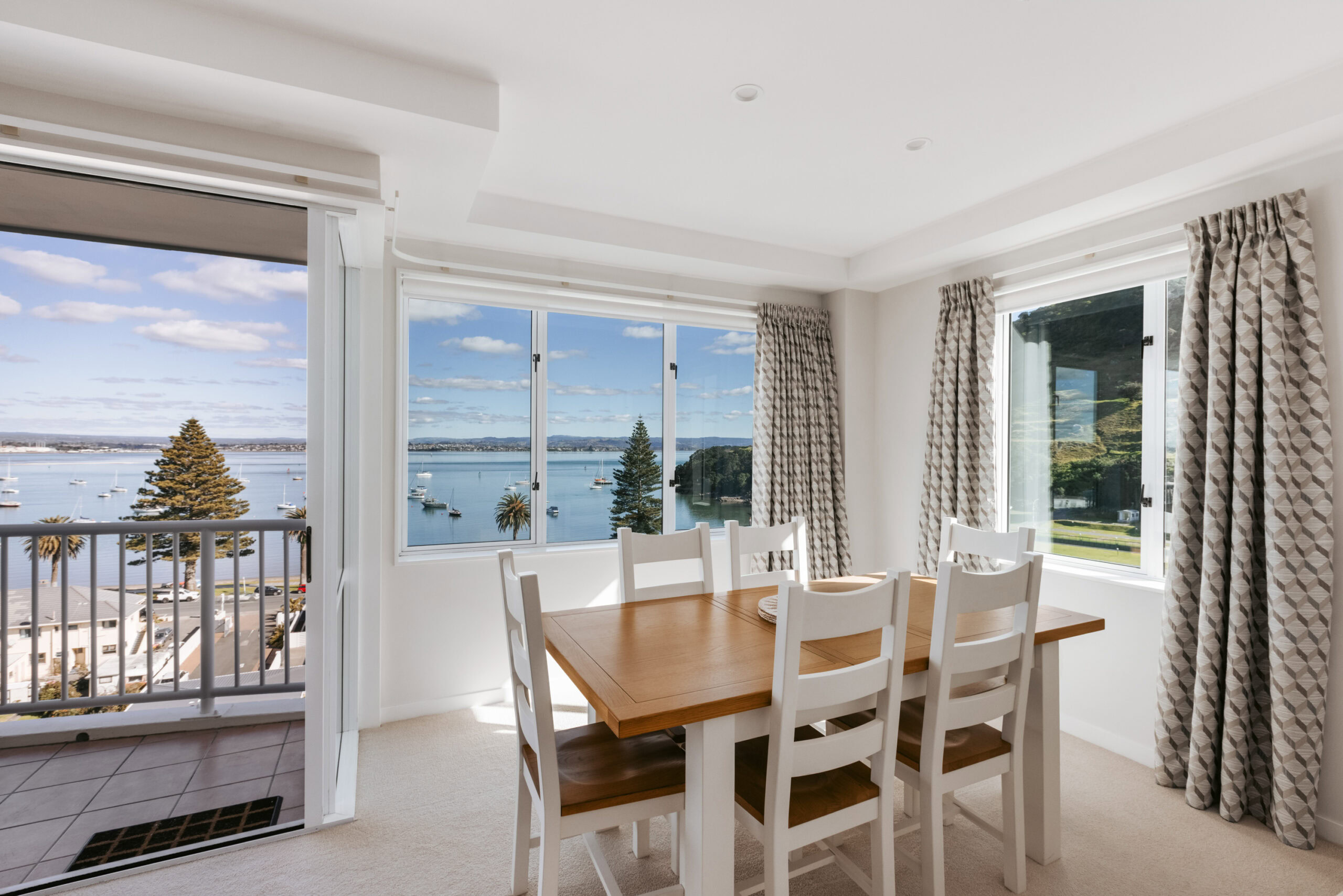 Perched on the 7th floor, this inviting three-bedroom Penthouse apartment offers a relaxed retreat with sweeping 180 degree sea views over Pilot Bay, the harbour, and Mount Maunganui. Designed for comfort and convenience, it’s ideal for couples, families, or corporate travellers.