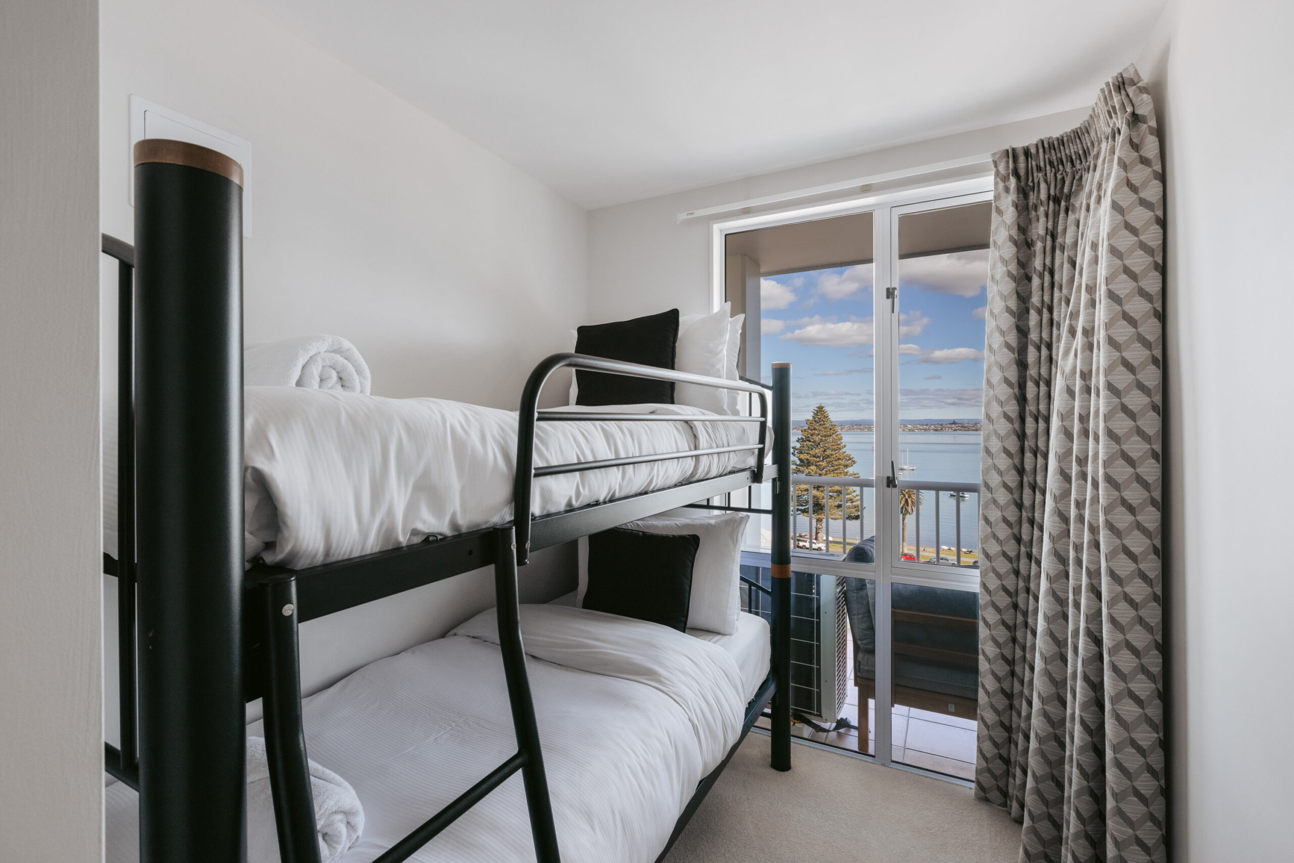 Slide open the doors to your private balcony and soak in sweeping views of the harbour, where ships drift by and Pilot Bay sunsets paint the sky – an ideal spot to pause and savour the moment.