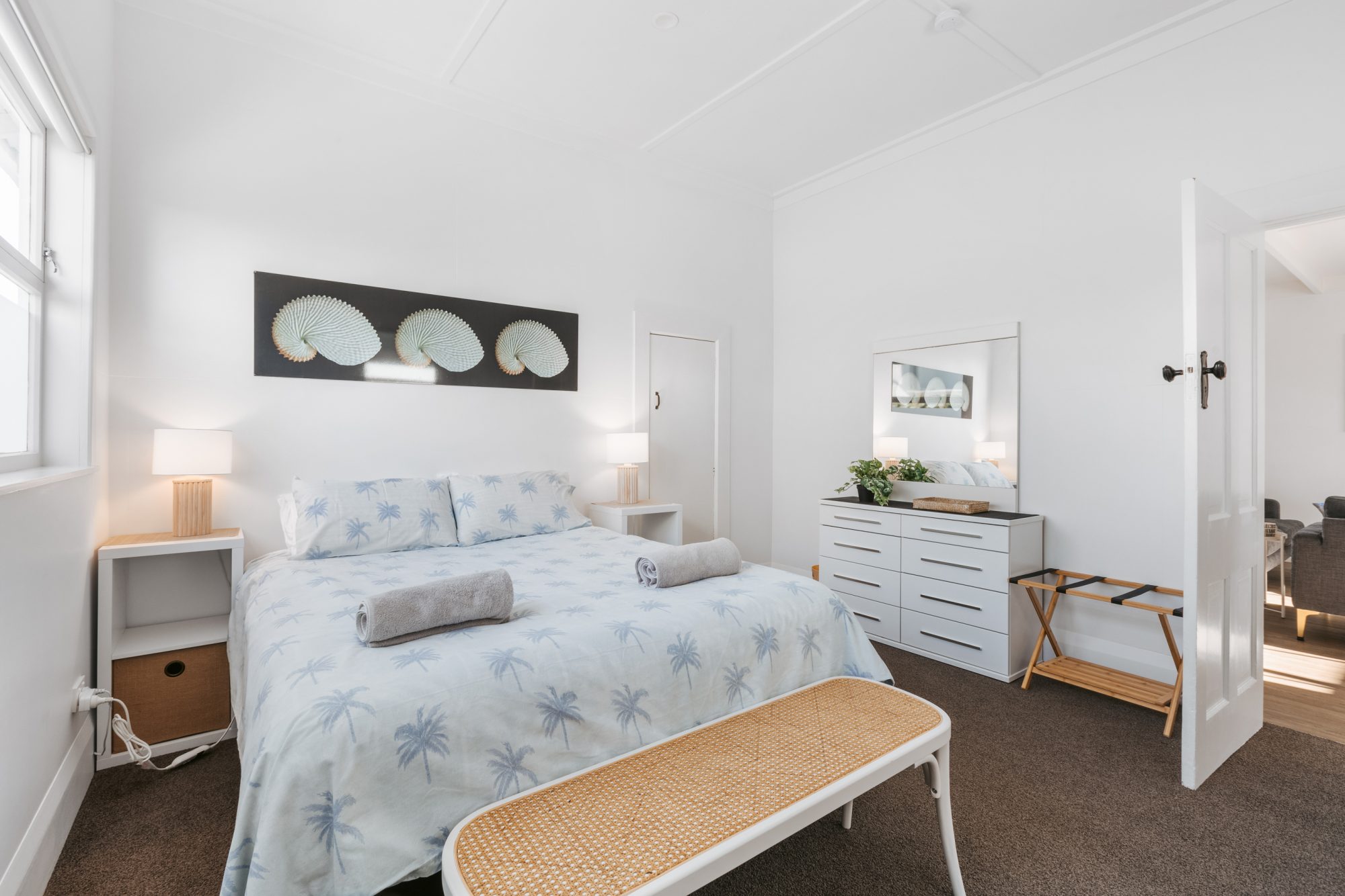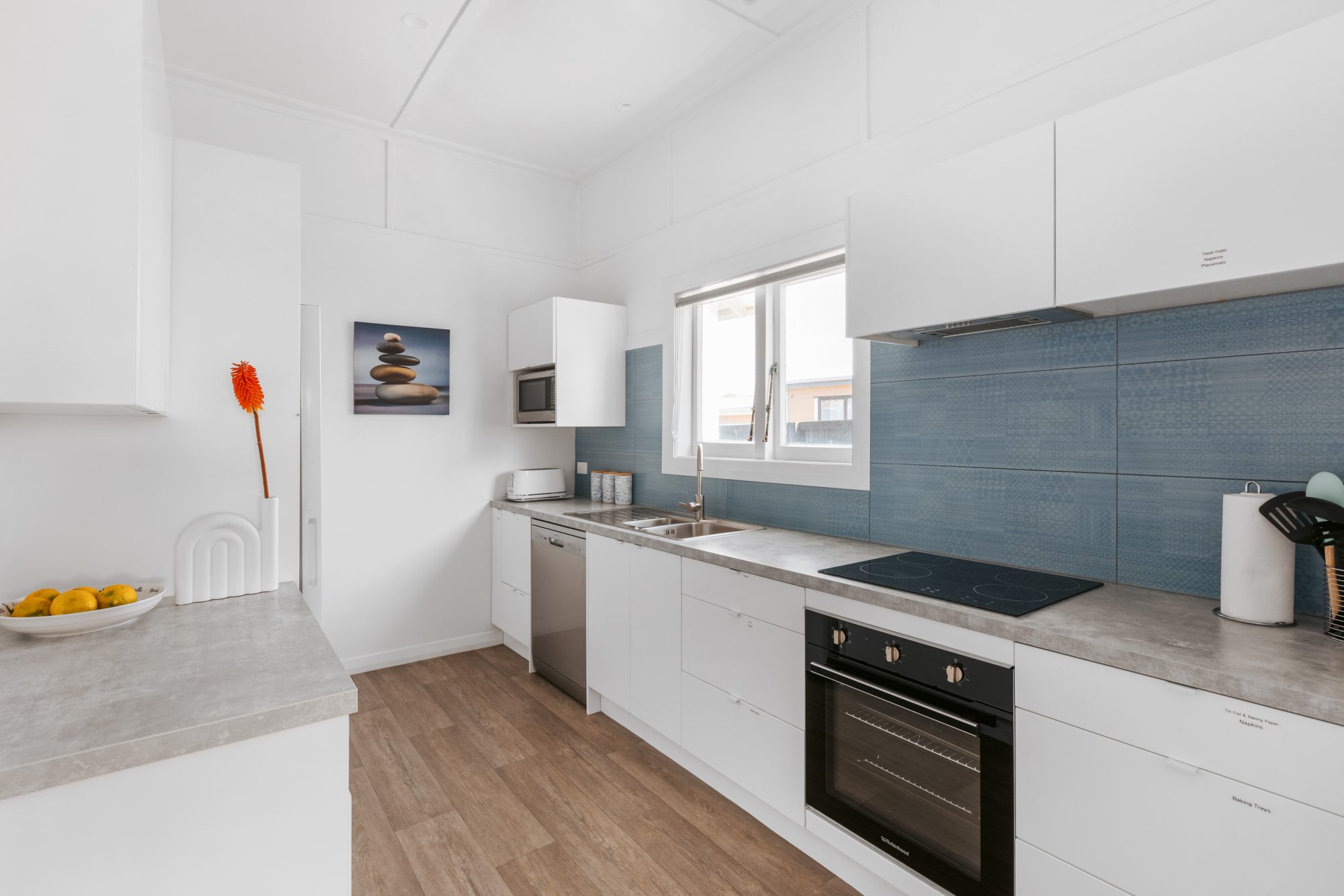 In warmer months, take a short walk across the road to one of the most beautiful coastlines in the country. Seek shade under the palms and pohutukawa trees, and make use of the full section for outdoor games, barbecues, and leisurely evenings. Enjoy the outdoor shower after your ocean dip and savor the fresh fruit from the trees while listening to the melodic tunes of Tui birds.