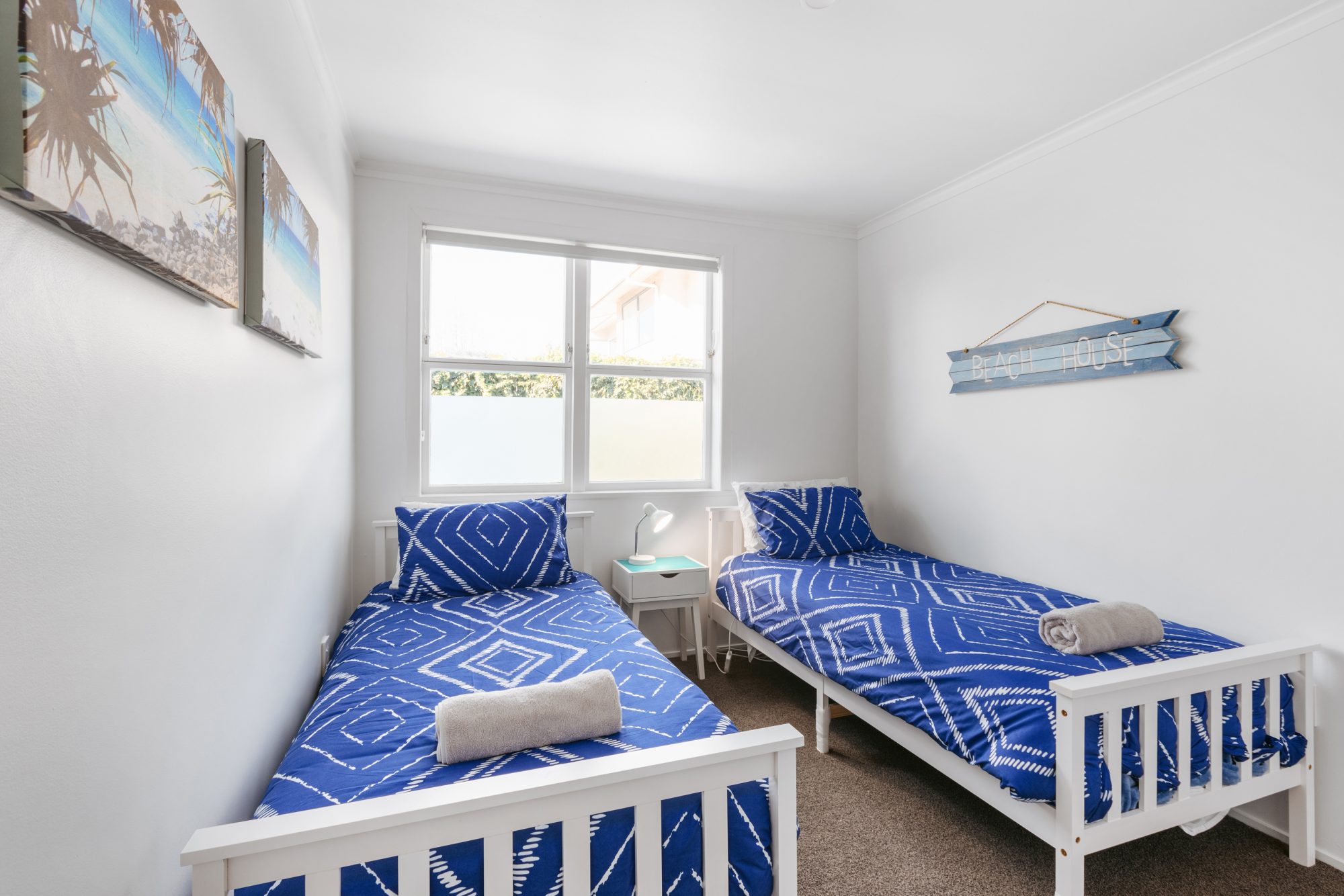 Three bedrooms are at your disposal, two with queen bed setups and one with two single beds. Linen is provided, allowing you to arrive with just your bags and beach vibes. The home accommodates up to six guests across three bedrooms.