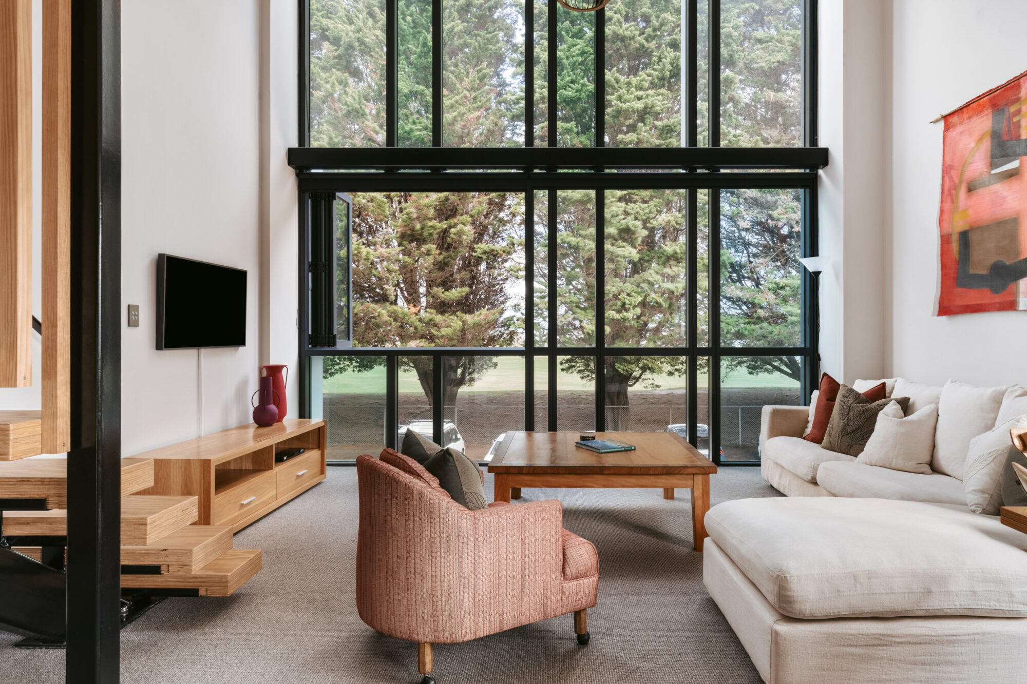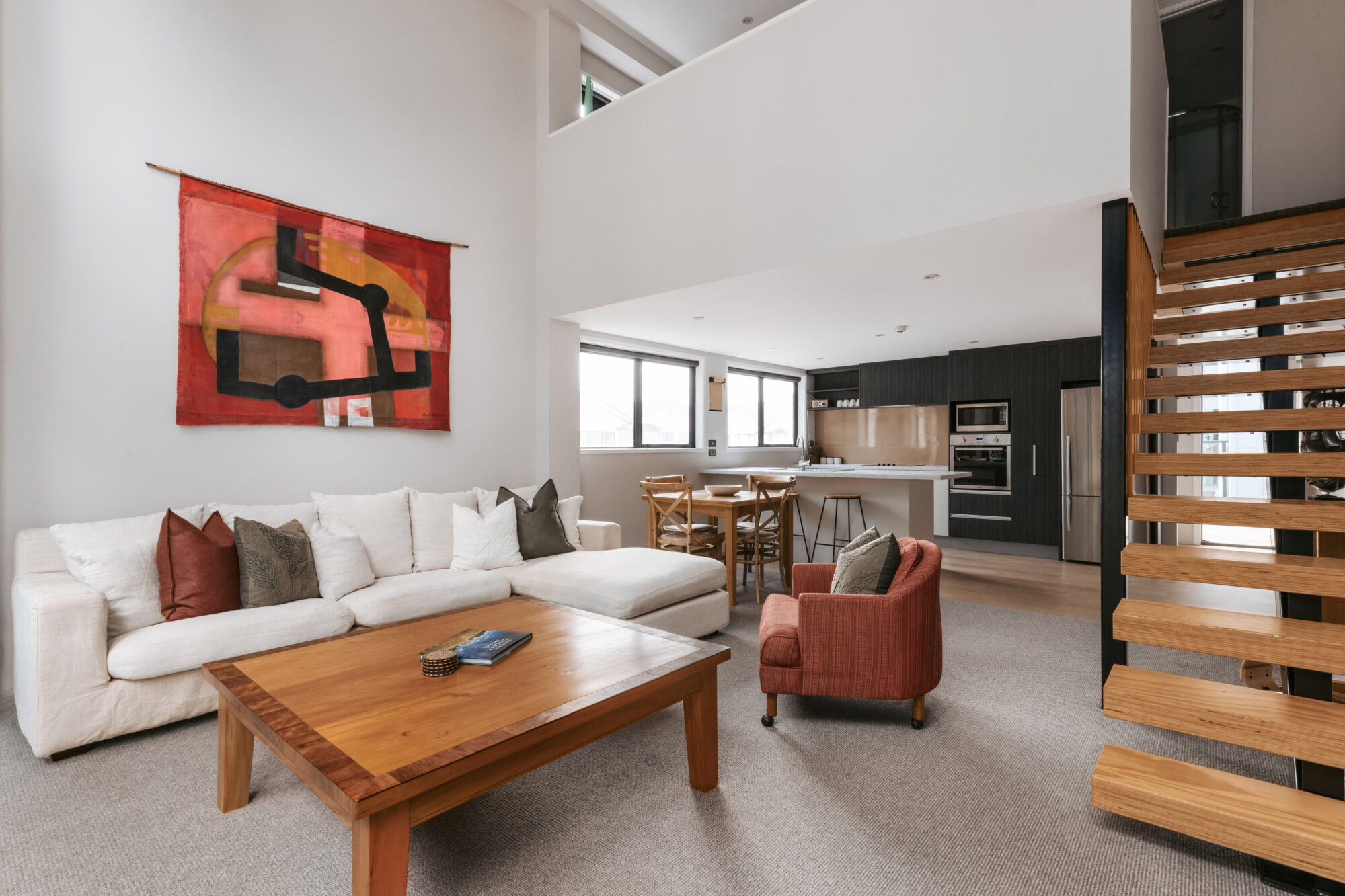 Step inside and you’ll find a beautifully appointed, urban-style loft that blends comfort and character across two levels. Downstairs features a spacious open-plan living, dining, and kitchen area – fully equipped for longer stays or weekend getaways. There’s also a convenient separate toilet on the lower level, complete with washing and drying facilities to make your stay that much easier.