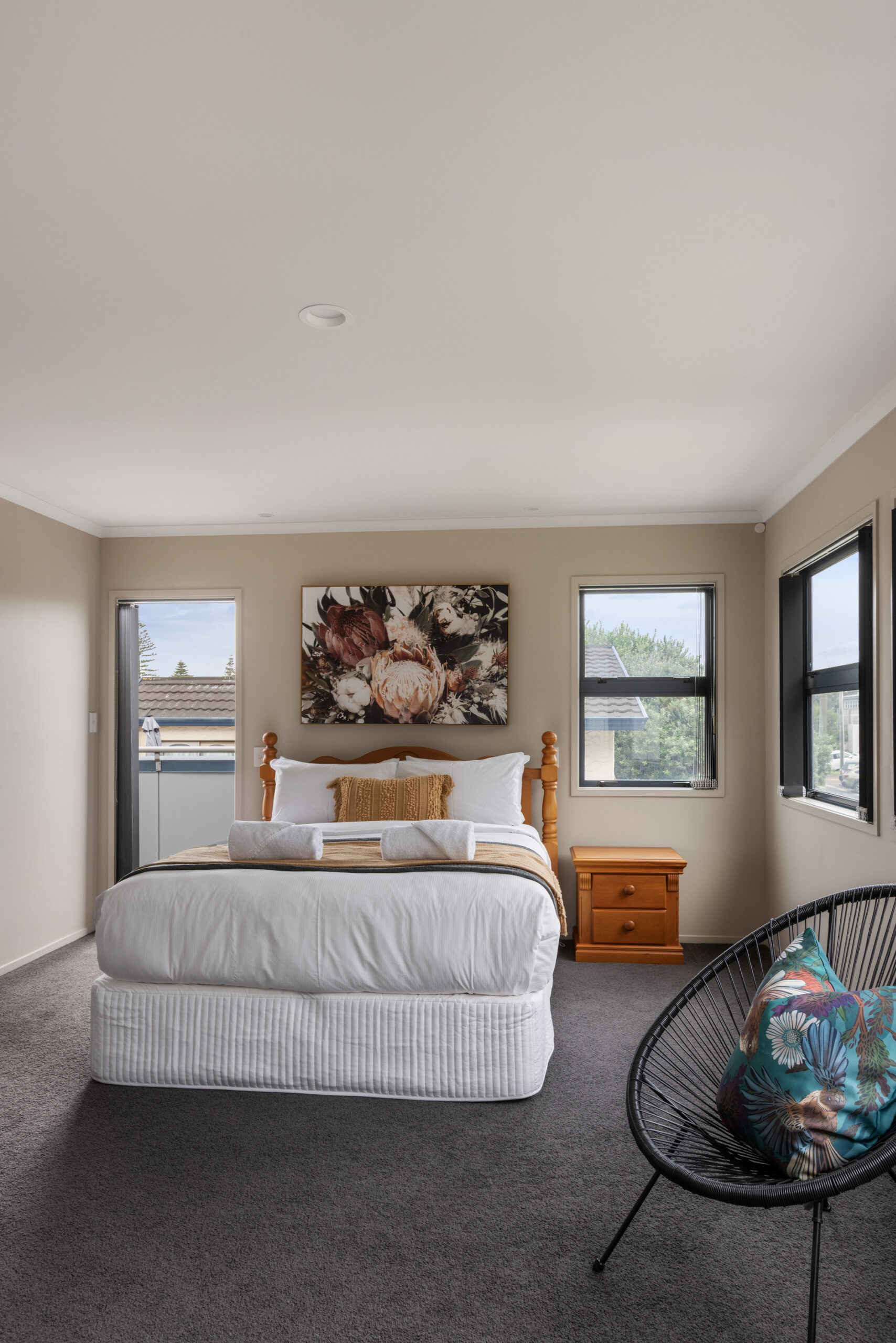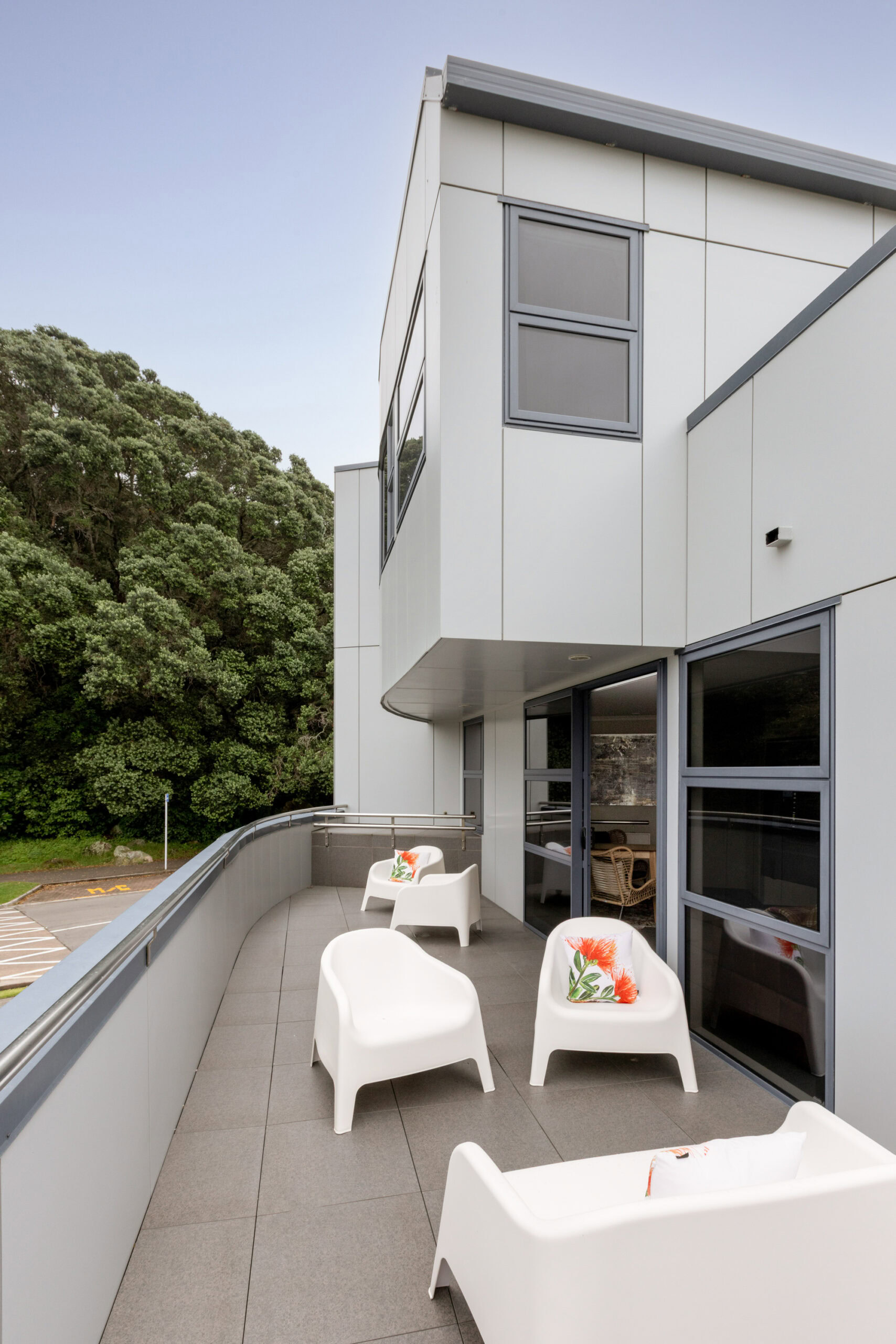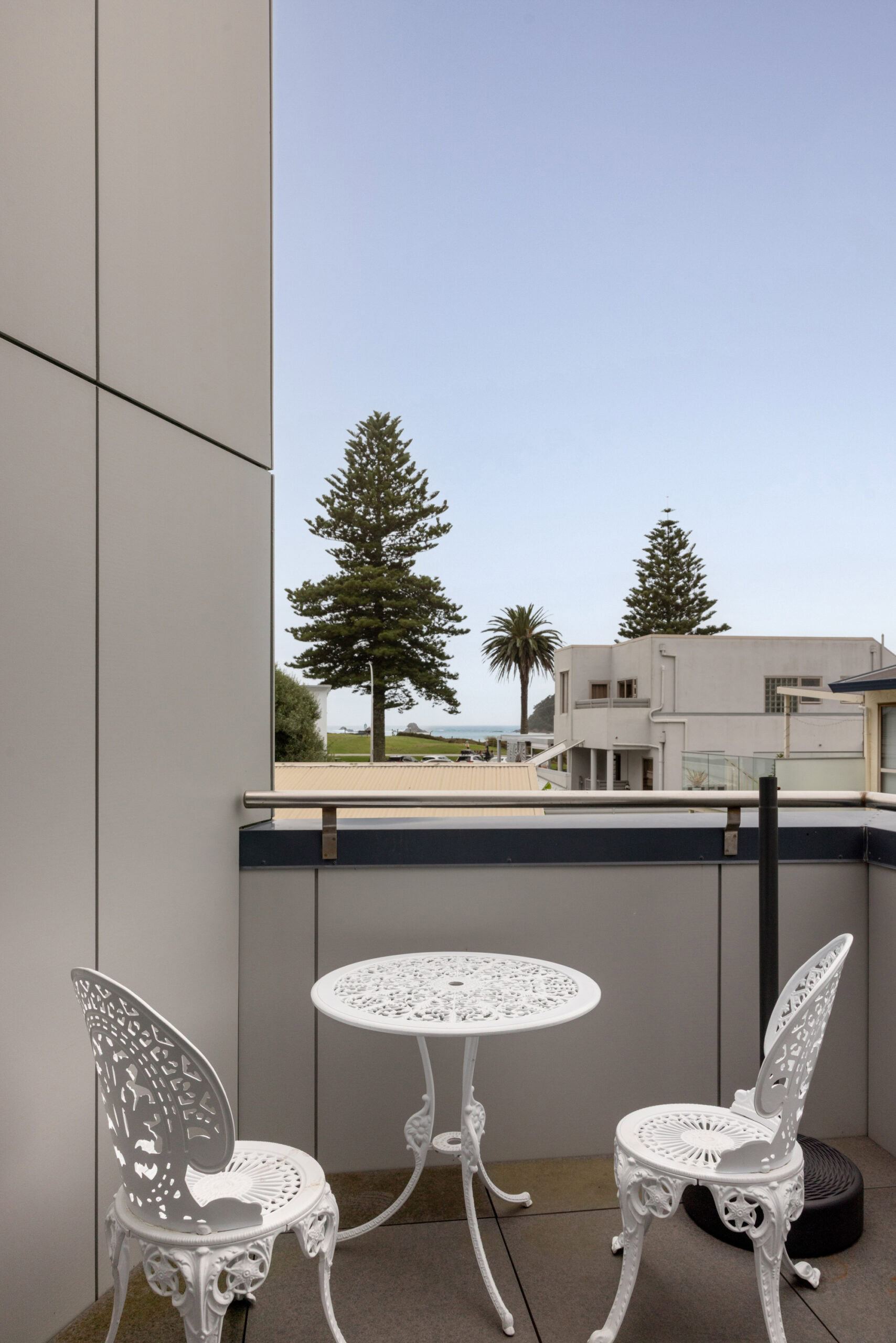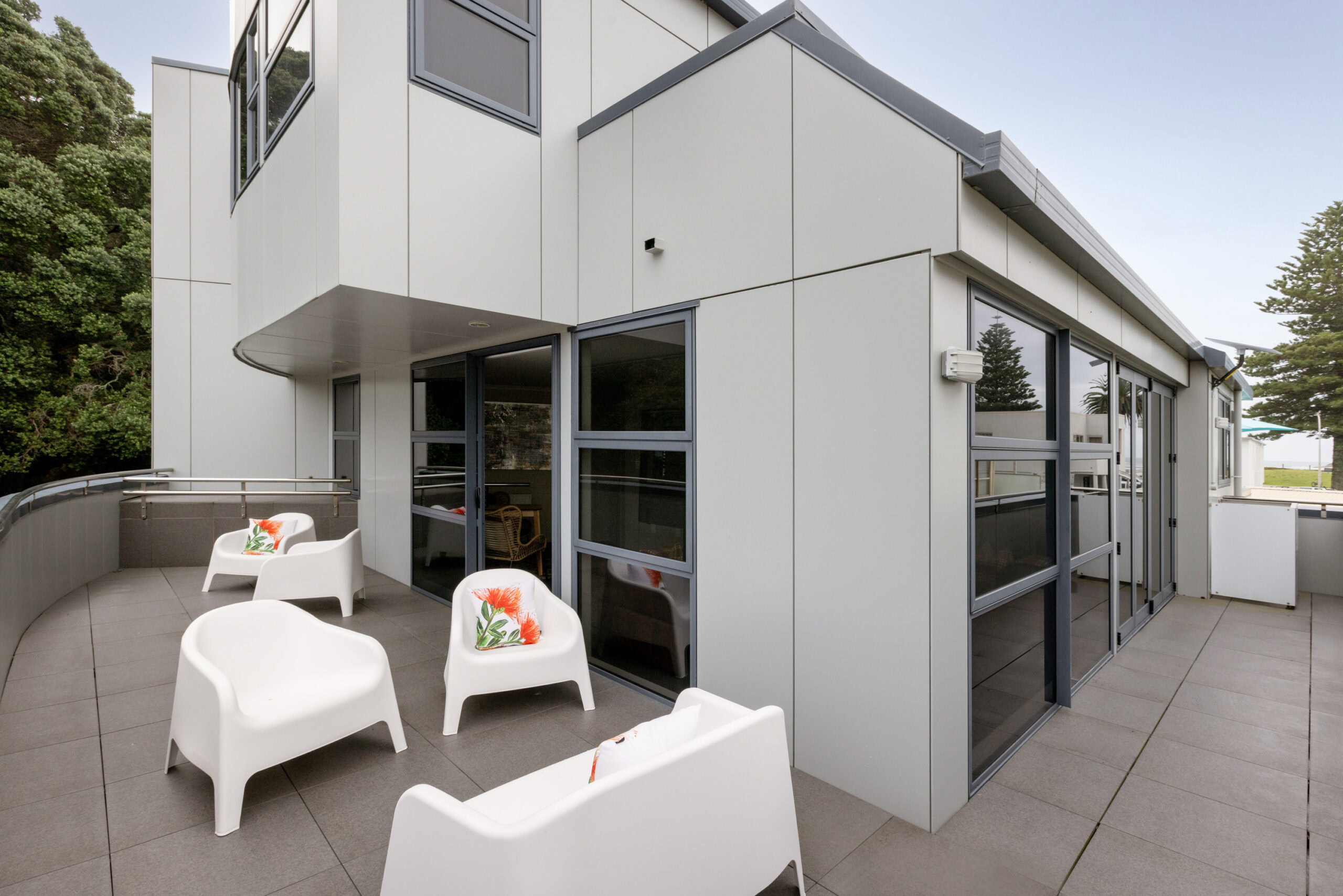 Thoughtfully designed across three levels, the building draws inspiration from the shape of a cruise ship, with large balconies reflecting the look of a ship’s upper decks and the master bedroom windows designed to mirror a cabin. It’s a stay that feels both unique and effortlessly coastal.