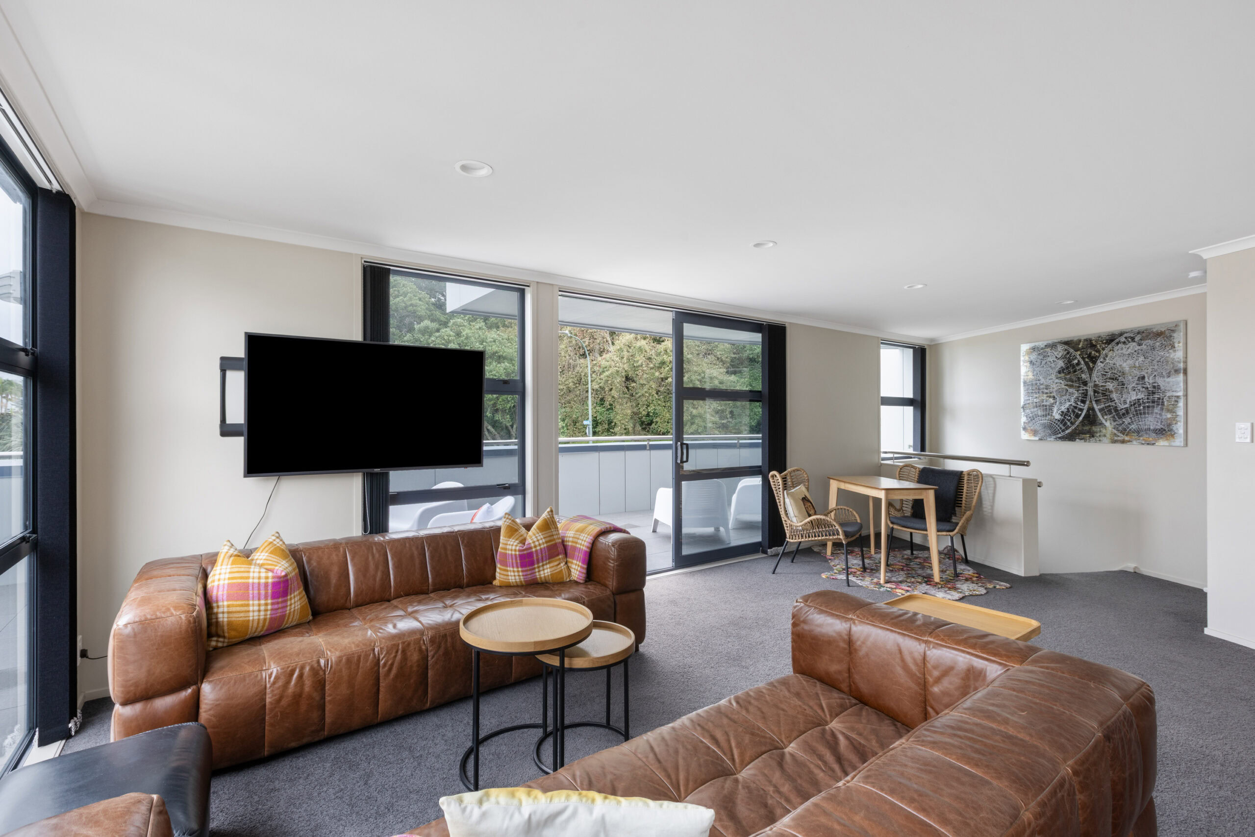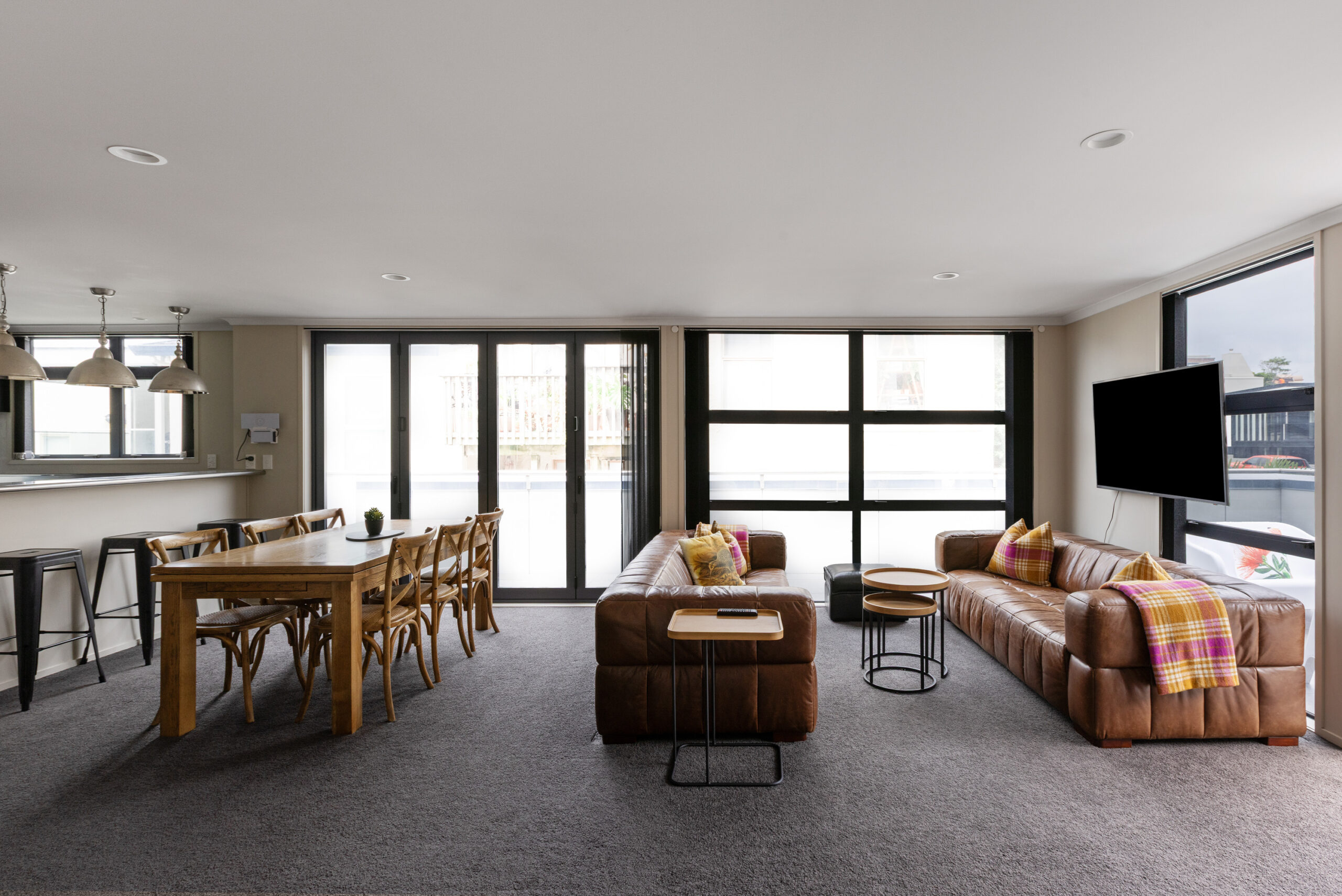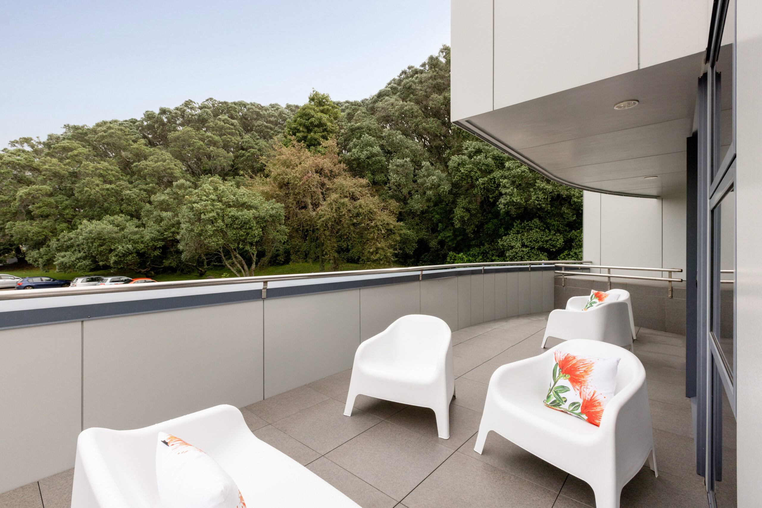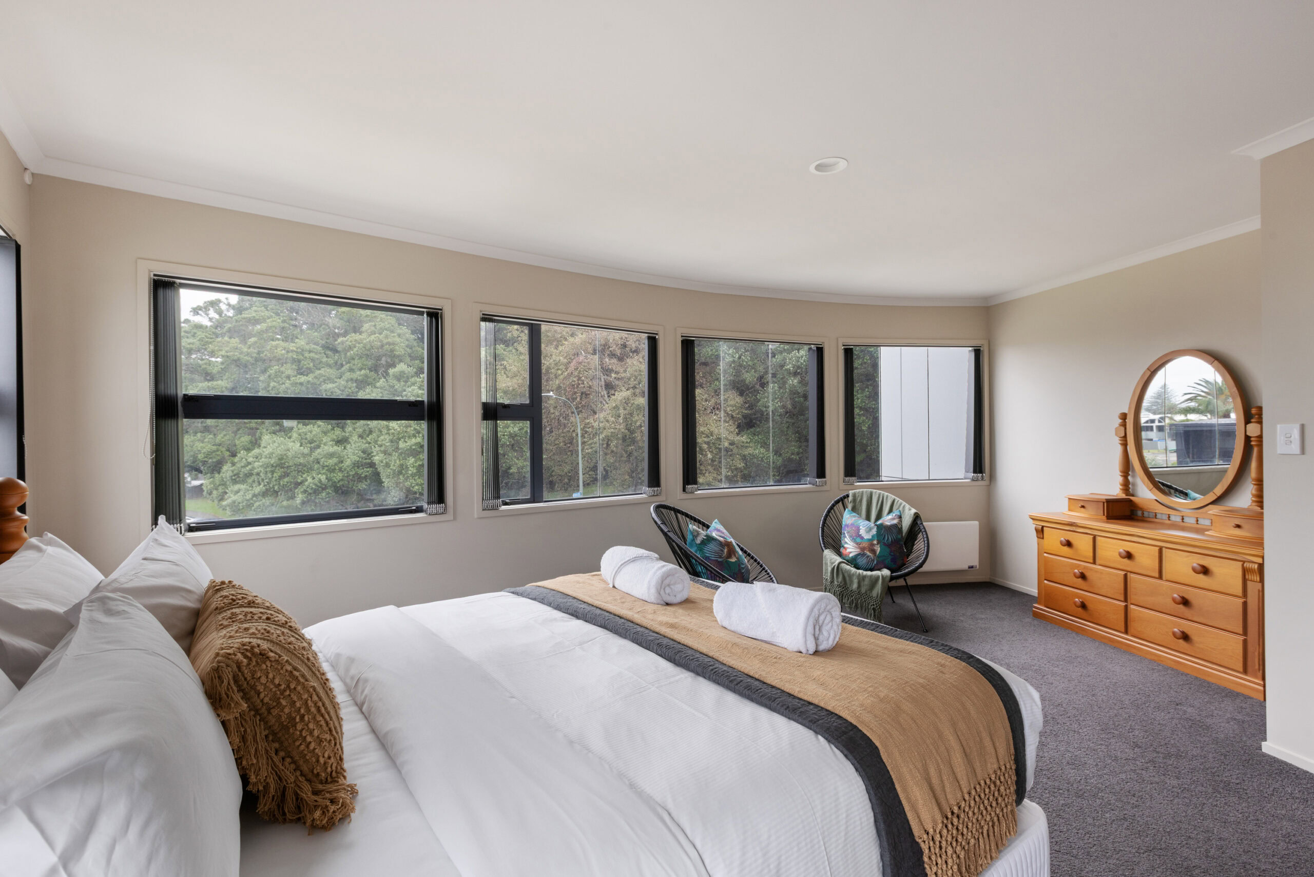 Thoughtfully designed across three levels, the building draws inspiration from the shape of a cruise ship, with large balconies reflecting the look of a ship’s upper decks and the master bedroom windows designed to mirror a cabin. It’s a stay that feels both unique and effortlessly coastal.