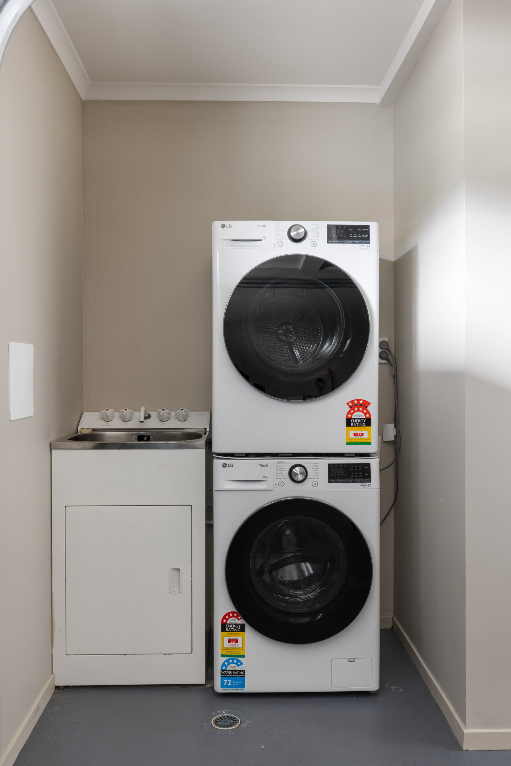 Additional features include secure off-street parking for two vehicles behind a pull-along fence, as well as full laundry facilities for added convenience during your stay.