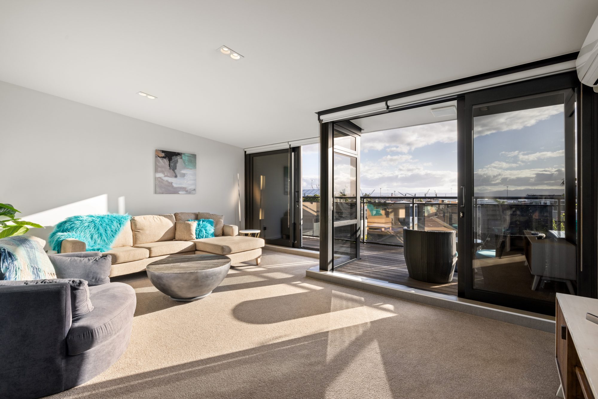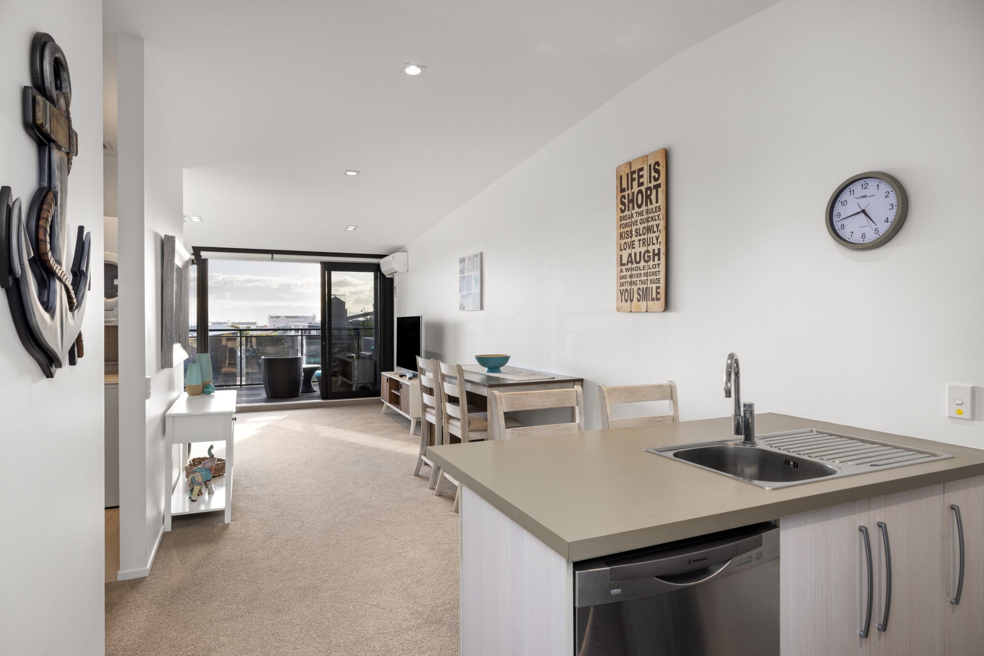 The space is stylishly designed, with a light and bright lounge area that leads to the hero of the home—a sun-drenched deck offering views from the Mount across to the Kaimai Ranges. Enjoy the deck from noon till night, soaking in the beautiful surroundings.